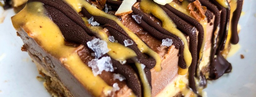 Salted Peanut Butter & Chocolate Cheesecake Slice (Raw, V, Paleo)