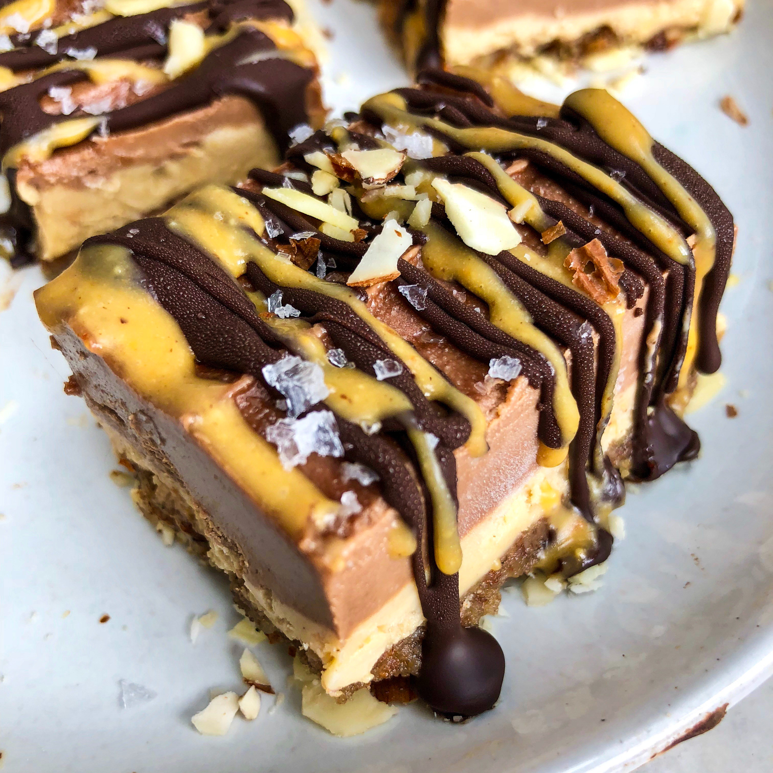 pb choc slice 1 Previous Next Published September 24, 2018 at 3024 × 3024 in Salted Peanut Butter & Chocolate Cheesecake Slice (Raw, V, Paleo)